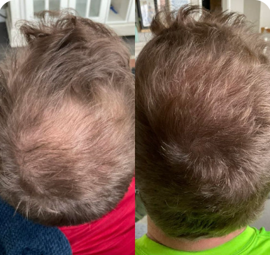 Shocked this product works. I’ve been using this since March 2025. This is Not a paid advertisement or received by promotion. As of June 15, the right photo above is my result. If you’re thinning or thinking of a transplant, I suggest this first. I use it twice a day, in the morning and before bed. Great product!!